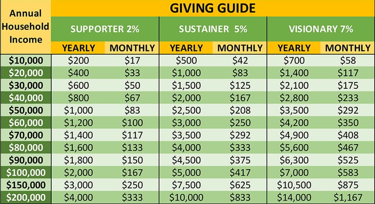 The decision about how much to give is a very personal one. You know your financial situation best and can best determine how to balance your commitment to Live Oak with your other commitments. Your ongoing financial contribution is a requirement of membership, and you are encouraged to also contribute your time and talent to our Mission.