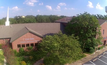 Two main buildings comprise the Live Oak campus — the main building, which includes the Sanctuary, Fellowship Hall, Narthex (Welcome Center), and Kitchen, and the Common Ground, a large space with professional dance flooring perfect for parties, receptions, or dances.