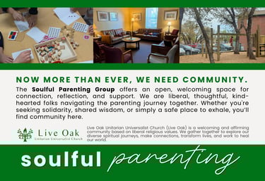 The Soulful Parenting Group provides an open and welcoming space for connection, reflection, and support. We are liberal, thoughtful, kind-hearted folks navigating the parenting journey together. Whether you’re seeking solidarity, shared wisdom, or simply a safe place to exhale, you’ll find community here.