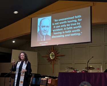 We want you to feel comfortable with your choices. Babies and children are always welcome in the sanctuary during worship. We understand that sitting still for an entire sermon can be a challenge for some, so we have “fidget items” available in the narthex, such as whiteboards for doodling, labyrinth tracing, and coloring pages. And yes—if knitting helps you focus, feel free to bring your project! For those needing a quieter space, we have two rooms at the back of the sanctuary with large windows and audio. One room is a play space for “wiggly” kids, and the other is a calm, low-stimulation area for those who need a bit of peace. We hope everyone in your family feels right at home here!