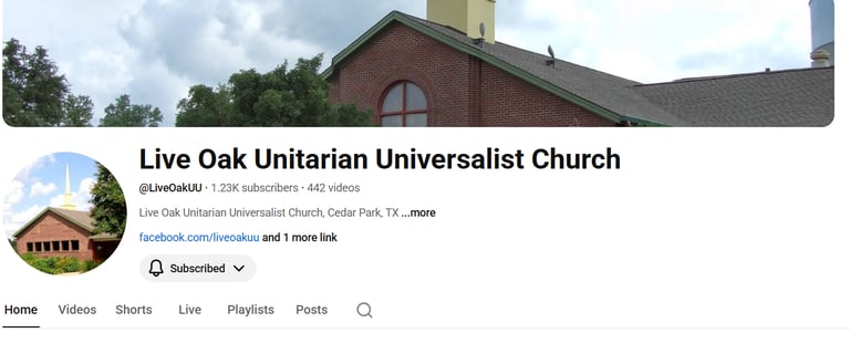 Live Oak Unitarian Universalist Church is unambiguously, unapologetically progressive. Here, we celebrate the LGBTQIA+ community, we know every identity is a divine expression of humanity, and we commit to the work of dismantling systemic racism and other oppressions, striving for a world where equity, compassion, and justice are the cornerstones of our shared existence.