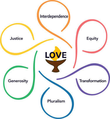 Love is the power that holds us together and is at the center of our shared values. We are accountable to one another for doing the work of living our shared values through the spiritual discipline of Love.